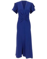 Victoria Beckham Women's Purple V-Neck Draped Dress