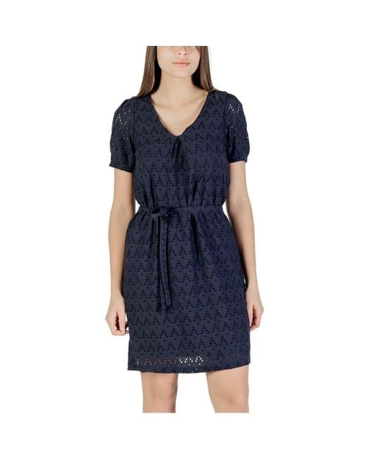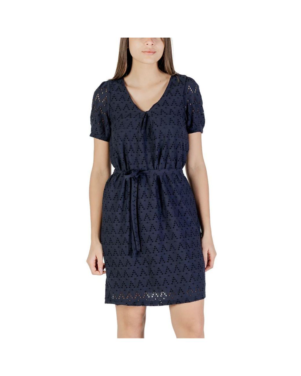 Discover the Viamalina V-Neck S/S/Pb short dress for women by Vila Clothes, a stylish and versatile piece perfect for any occasion. Made from 64% recycled polyester, 34% cotton, and 2% elastane/lycra, this dress offers exceptional comfort and an ideal fit. The V-neckline and short sleeves add a feminine touch, while the waist belt accentuates the silhouette. With its refined design and quality materials, the dress is perfect for summer events, lunches with friends, or city strolls. Choose Viamalina for a fresh and trendy look without compromising on sustainability. Colour: blue