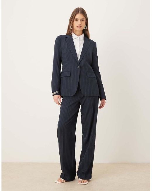 Trousers & Leggings by Vila High rise Pinstripe pattern Side pockets Back pockets Belt loops Straight leg. Polyester. Colour: blue
