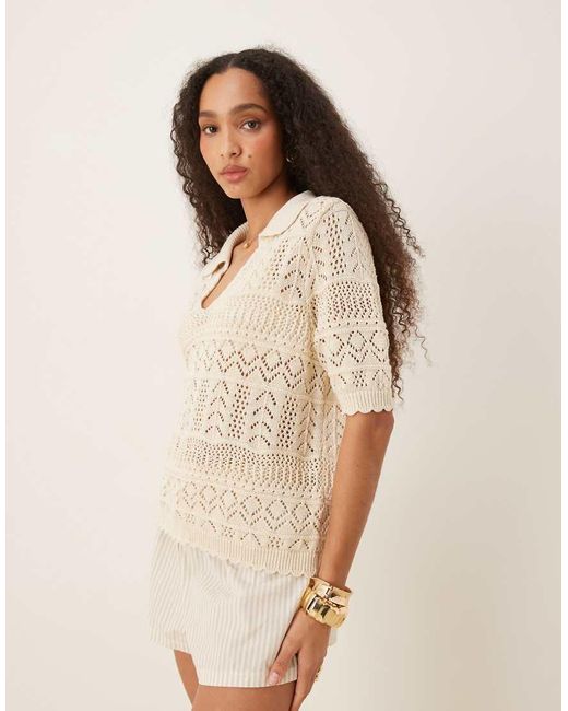- Patterned Crochet Short Sleeve Knitted Polo Top