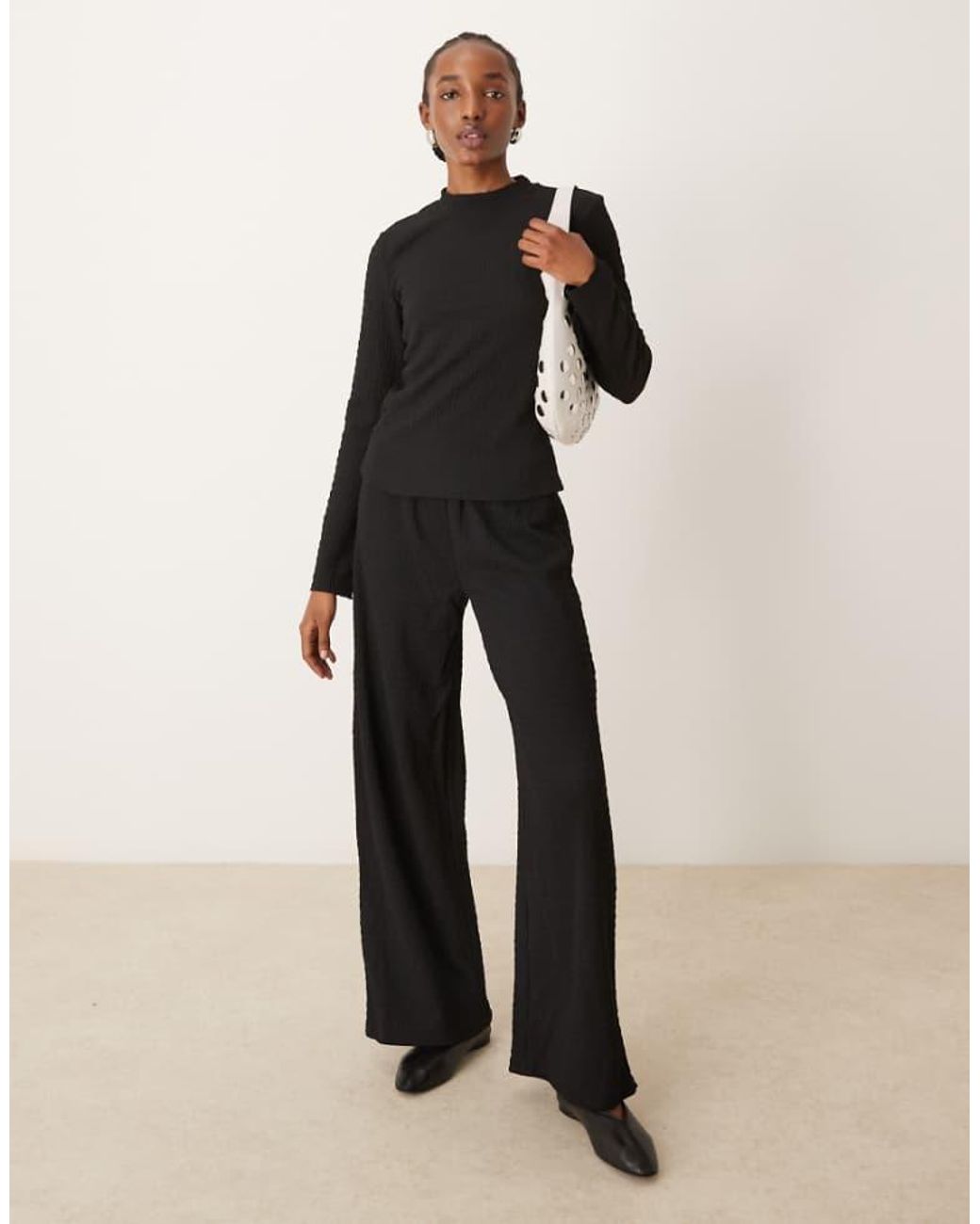 Wide Leg Textured Glitter Trousers Co-ord - Black