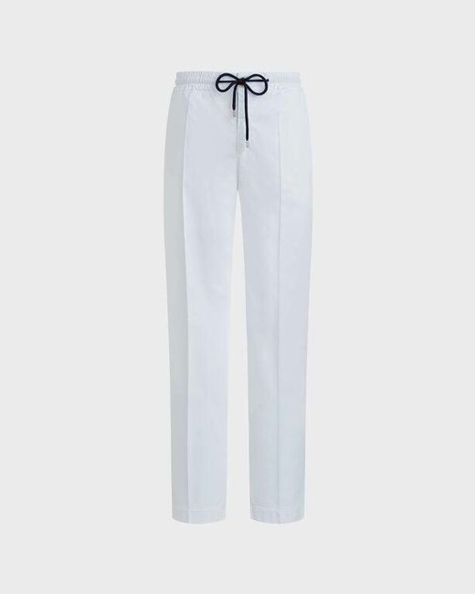 Men's Blue Cotton And Elastic Waist Trousers Solid
