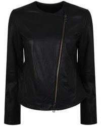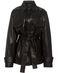Cut from supple, buttery lambskin, this elegant leather jacket is done in a clean and refined silhouette. Features a collarless neckline and cropped hem for a boxy fit. Colour: brown
