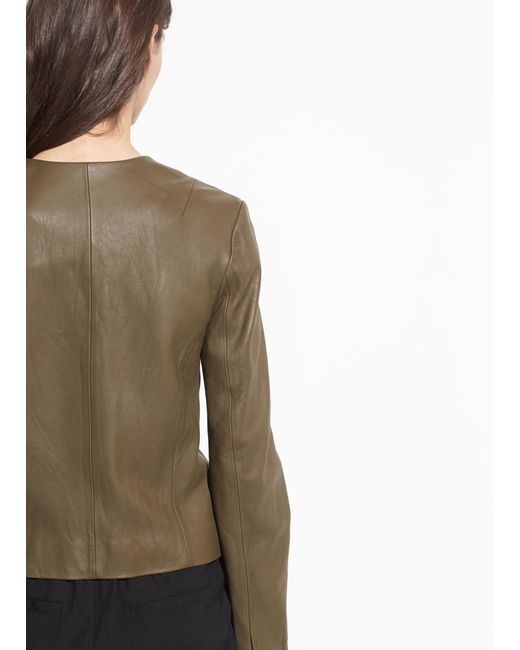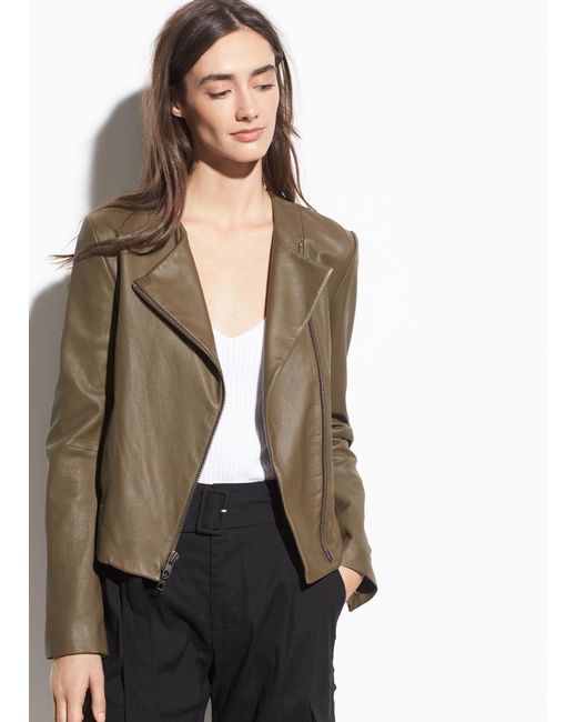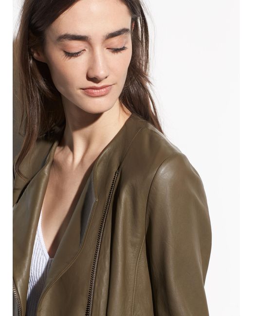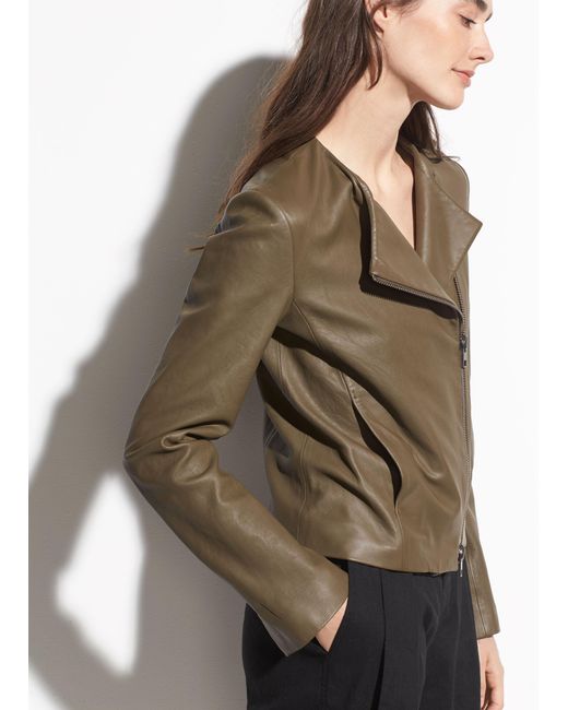 Cut from butter-soft leather, the cross front leather jacket features an asymmetric silhouette. A statement zip complements its slim shape. Colour: multicolour