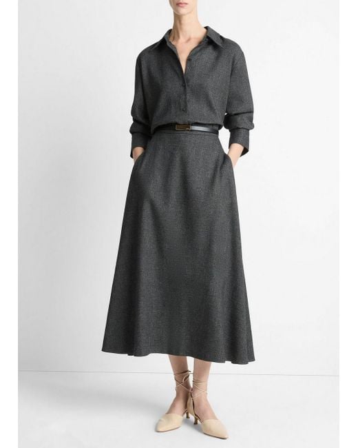 Traditional fabrics and patterns underpin our Fall Collection. This timeless A-line skirt is crafted from an Italian jaspe fabric, created through a long-standing process that weaves together different-colored yarns to produce rich dimension. Its blend features linen and wool for a soft, breathable feel as the weather shifts. One last thing: there are pockets discreetly tucked into the sides - a detail we add to our dresses and skirts any chance we get. Colour: black