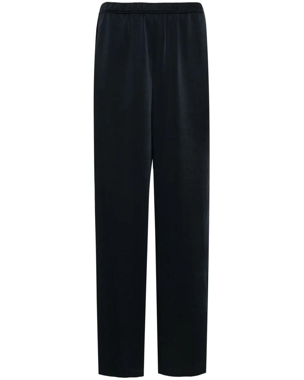 Midnight blue satin finish high-waisted elasticated waistband two side inset pockets straight leg two rear button-fastening pockets straight leg Size: XS. Gender: Female. Material:Polyester.