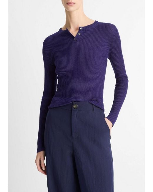 - Ribbed Cashmere-Silk Henley Sweater