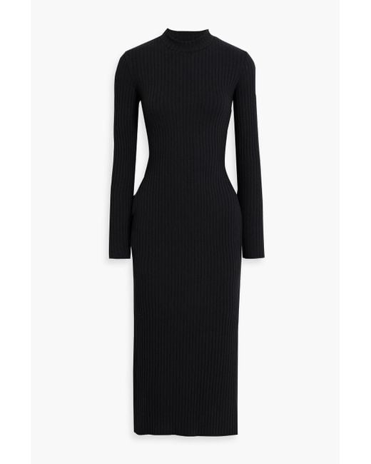 Women's Black Ribbed Cotton-Blend Midi Dress