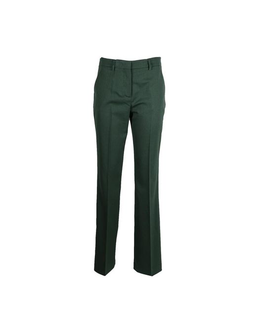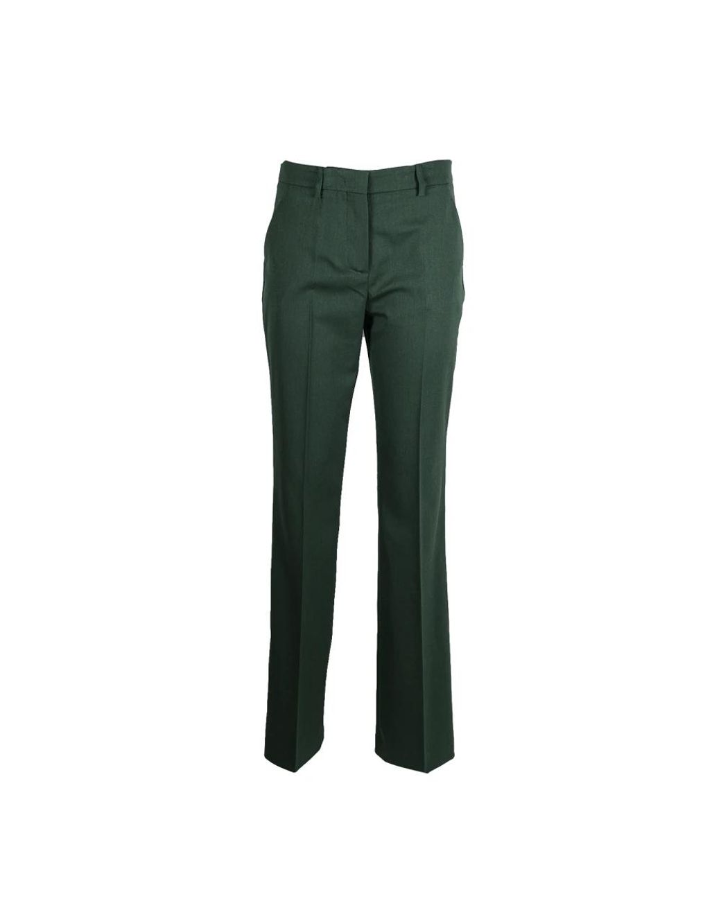 Elevate your wardrobe with these classic green trousers from Vivetta. Crafted from light wool, these low-waisted trousers feature a slim fit, centre front closure with zip and clip, belt loops, and a personalized label on the back. Made in Italy from 54% polyester, 44% wool, and 2% elastane. Colour: green