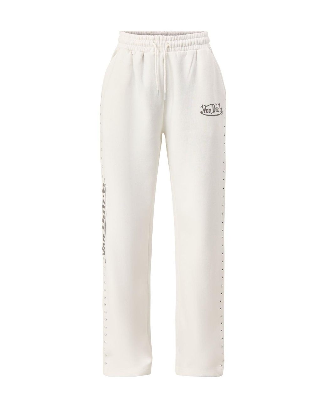 The Jogger Studs by Von Dutch combine casual comfort with statement detailing. Designed with a relaxed fit and stud accents, they add edge to everyday outfits. A standout piece for contemporary casual styling. | Von Dutch Womens Jogger Studs in White | Von Dutch Womens Jogger Studs in White, Size Small Colour: white
