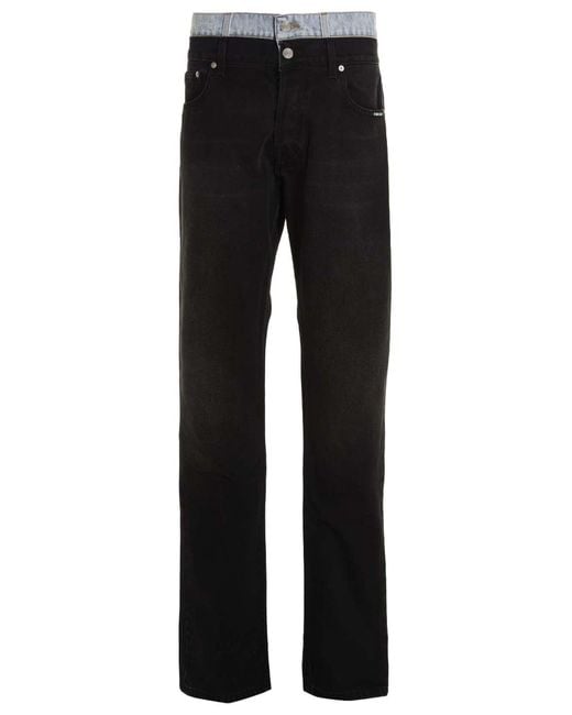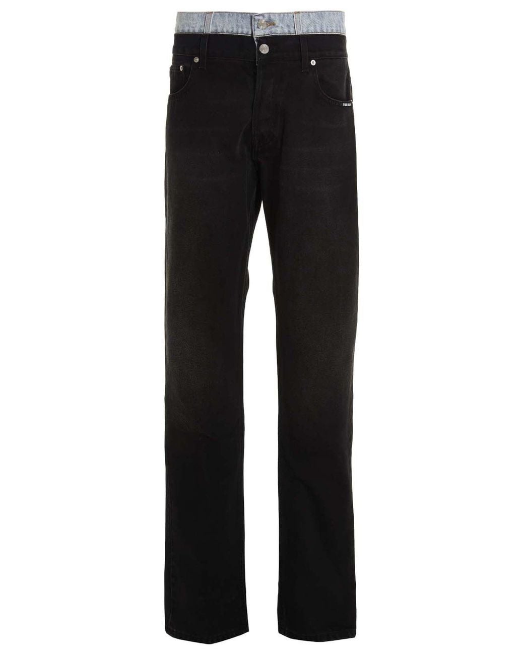 Double waisted' denim jeans with contrast double waist and a button closure. Composition: 100% cotton Colour: black