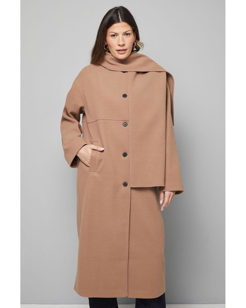 Distinctive scarf collar design that can be styled in multiple ways for added warmth and sophistication Oversized silhouette with dropped shoulders for a contemporary, relaxed fit Practical side pockets perfect for keeping essentials close at hand Button-through front fastening with contrasting buttons for subtle detail Mid-length cut offering generous coverage for cooler days The Wallis Scarf Car Coat presents a masterclass in sophisticated daywear. The standout scarf collar creates a dramatic neckline that can be draped, wrapped or folded according to your mood and the weather. This versatile piece pairs beautifully with slim trousers as shown, creating a balanced silhouette that works wonderfully for family gatherings or weekend brunches. The generous proportions and clean lines make it ideal for layering over knitwear without feeling restricted. Style with ankle boots and statement earrings for shopping trips, or dress down with your favourite trainers and a crossbody bag for casual coffee dates. The timeless design ensures this coat will remain a wardrobe cornerstone for seasons to come, offering both comfort and an air of quiet confidence for everyday elegance. Colour: natural