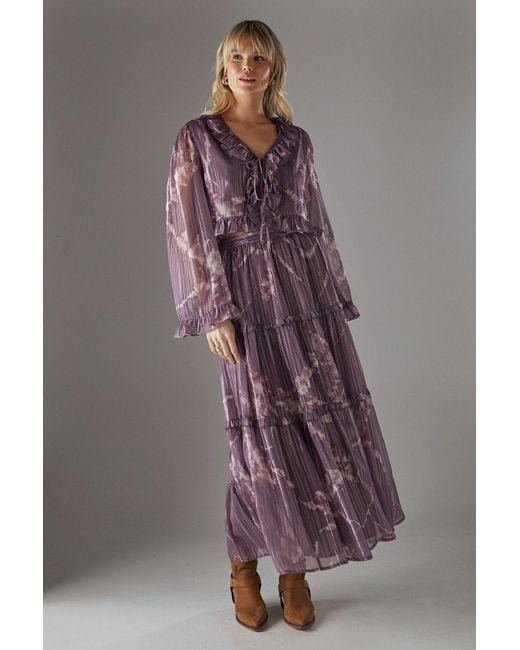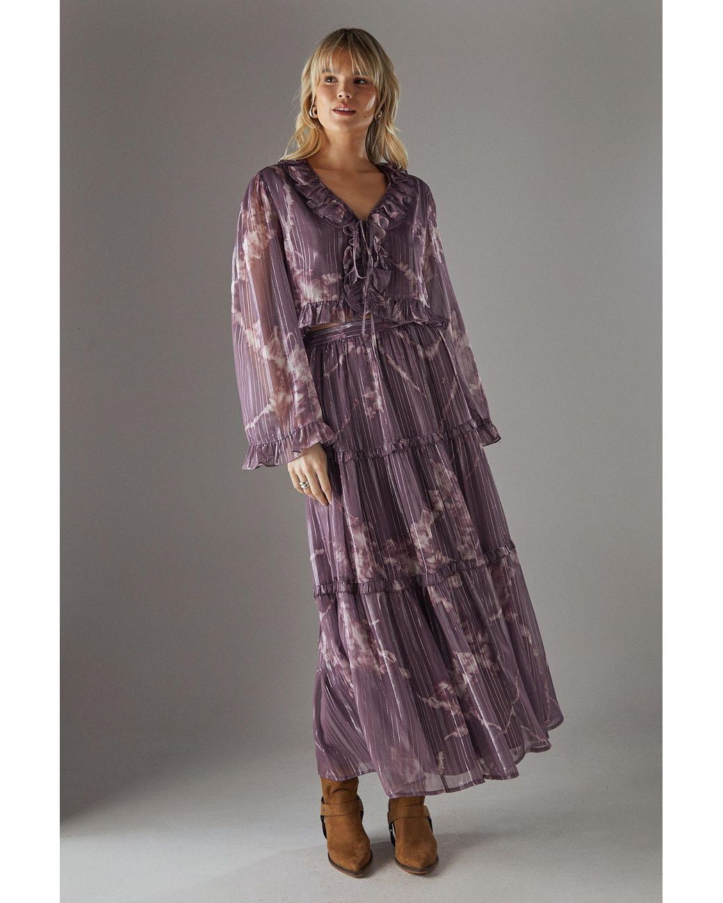 Women's Purple Metallic Chiffon Tier Maxi Skirt