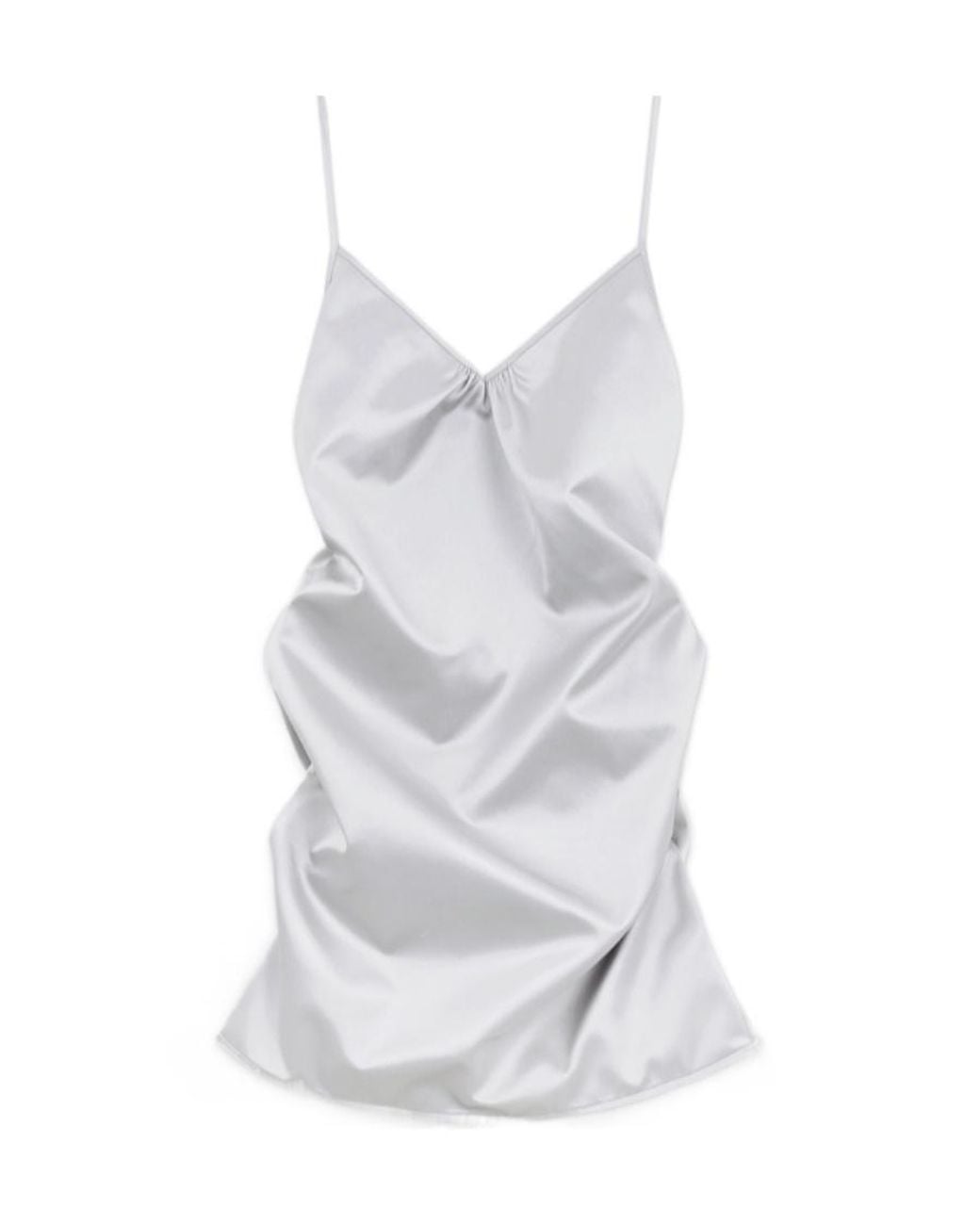 Logo halter skirt V-collar Thin shoulder strap There is a zipper at the side seam Colour: white