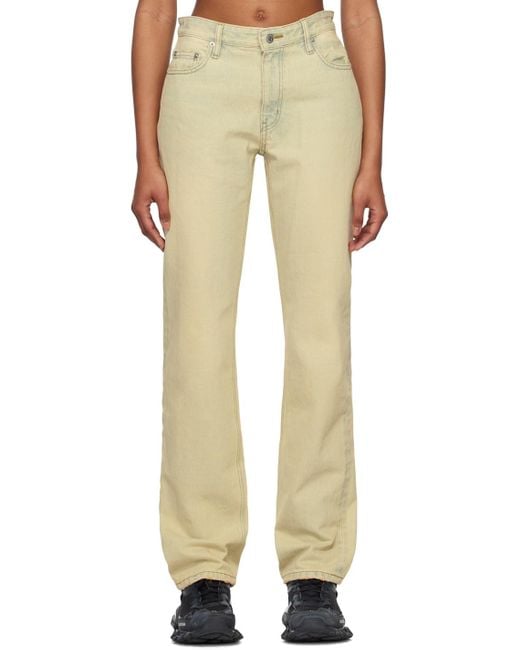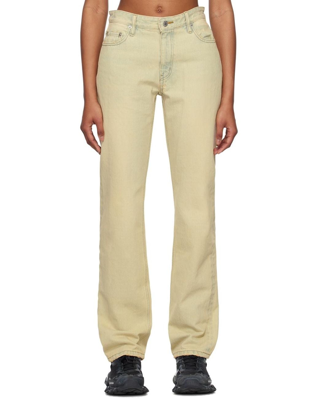 Straight-leg non-stretch denim jeans. Fading, whiskering, and distressing throughout. Belt loops · Five-pocket styling · Zip-fly · Logo-engraved silver-tone hardware Supplier color: Beige Colour: natural