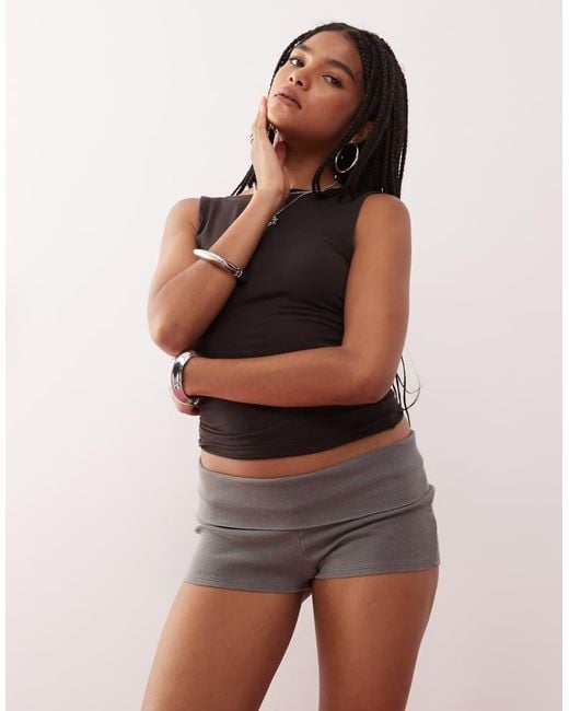 Jersey Ribbed Hot Pants With Fold Over Waistband