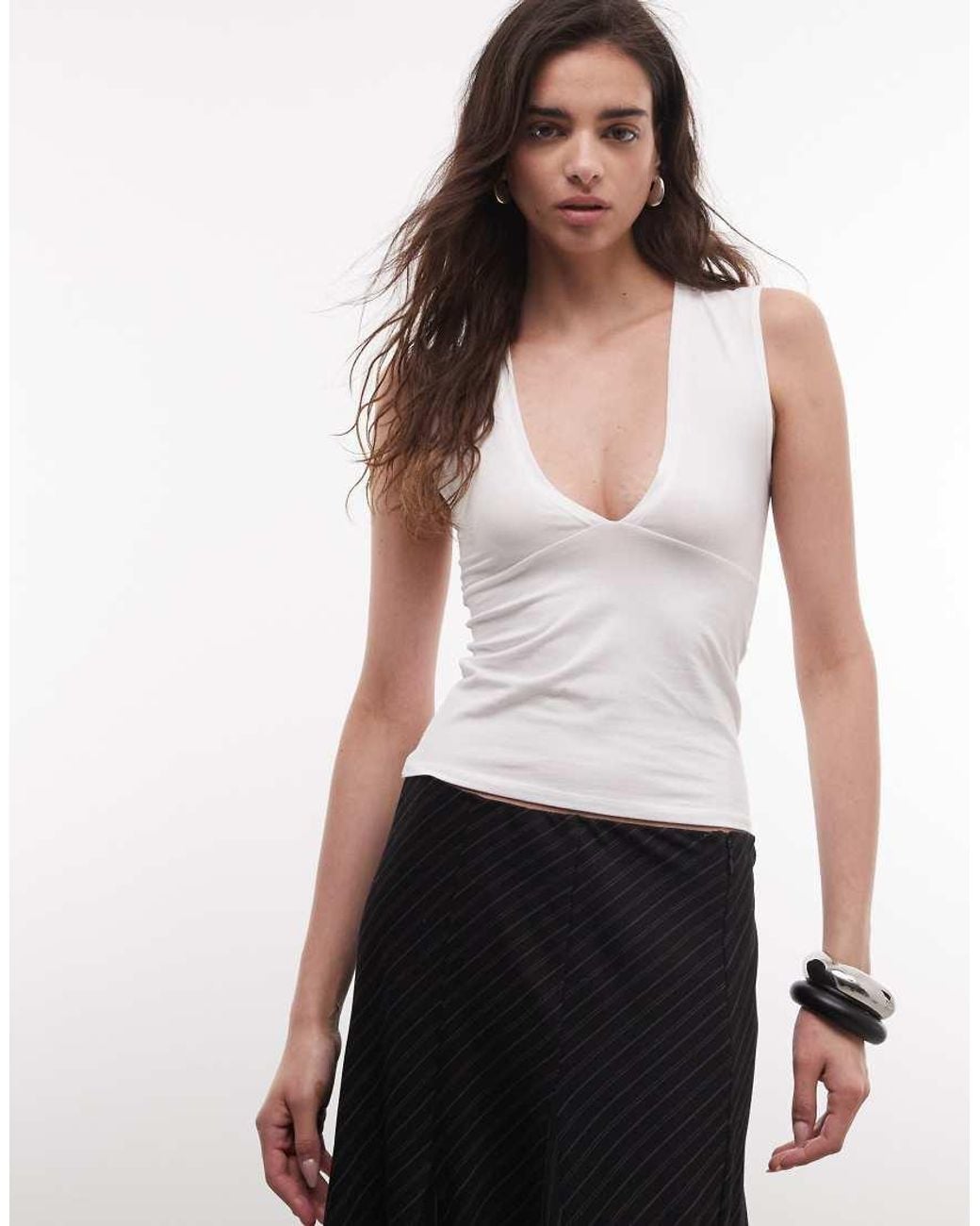 Women's White Low Plunge Top