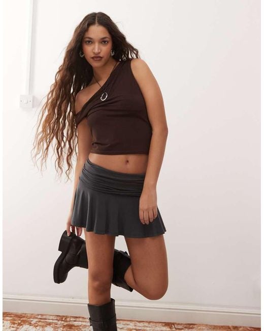 Asymmetric Mini Skirt With Contrast Satin Detail - Natural