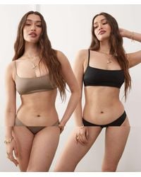 Swimwear & Beachwear by Weekday Exclusive to ASOS Pack of two Low rise Adjustable tie sides Brazilian cut Colour: green