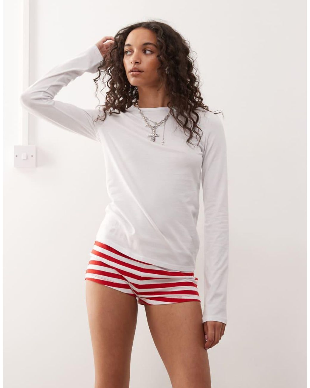 Tops by Weekday Plain design Crew neck Long sleeves Slim fit. Cotton/Elastane. Colour: white