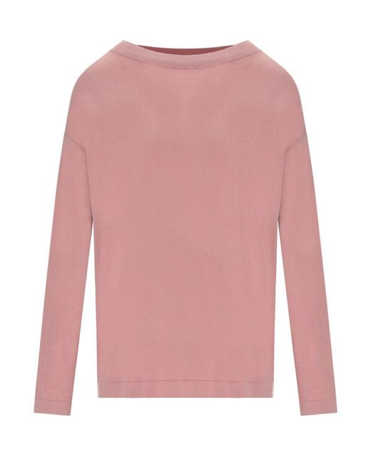 Max Mara Weekend Lepre pullover made in pink silk-and-cotton yarn. Boat neckline, relaxed fit. Composition: 55% silk, 45% cotton. Colour: pink
