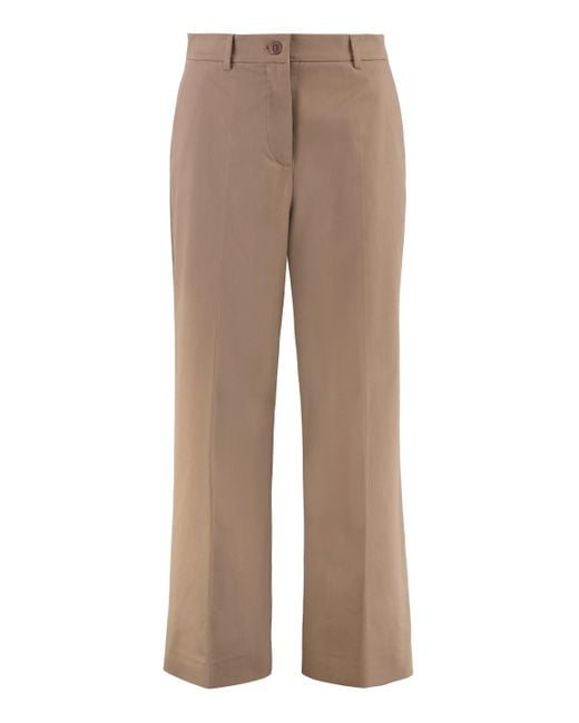 Cropped Wide-Leg Trousers With Pressed Crease - Natural