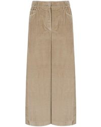Go to Baltini350 stripes pure cotton velvet Ursola trousers, extra wide flared and slightly crop leg, elastic waistband at the back, front zip and button closure, pockets. Gender: Women. Material: 100% COTTON. Color: Beige. Made