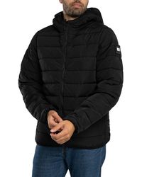 Go to Get The LabelMens Weekend Offender La Guardia Padded Jacket in green.- Adjustable bungee cord hood.- Front zip up fastening with a Weekend Offender branded zipper.- Front zip pockets.- Elastic binding on the hood sleeve cuffs