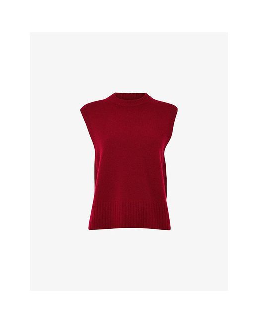 Women's Red Round-Neck Regular-Fit Wool Vest