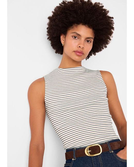 - Stripe High Neck Rib Tee