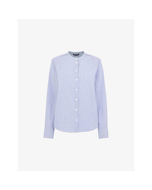 Whistles cotton shirt100% cottonButton fasteningRegular fit, grandad collar, long sleeves, buttoned cuffs, striped patternMachine wash mildTrue to sizeLightweight, non-stretch Colour: blue