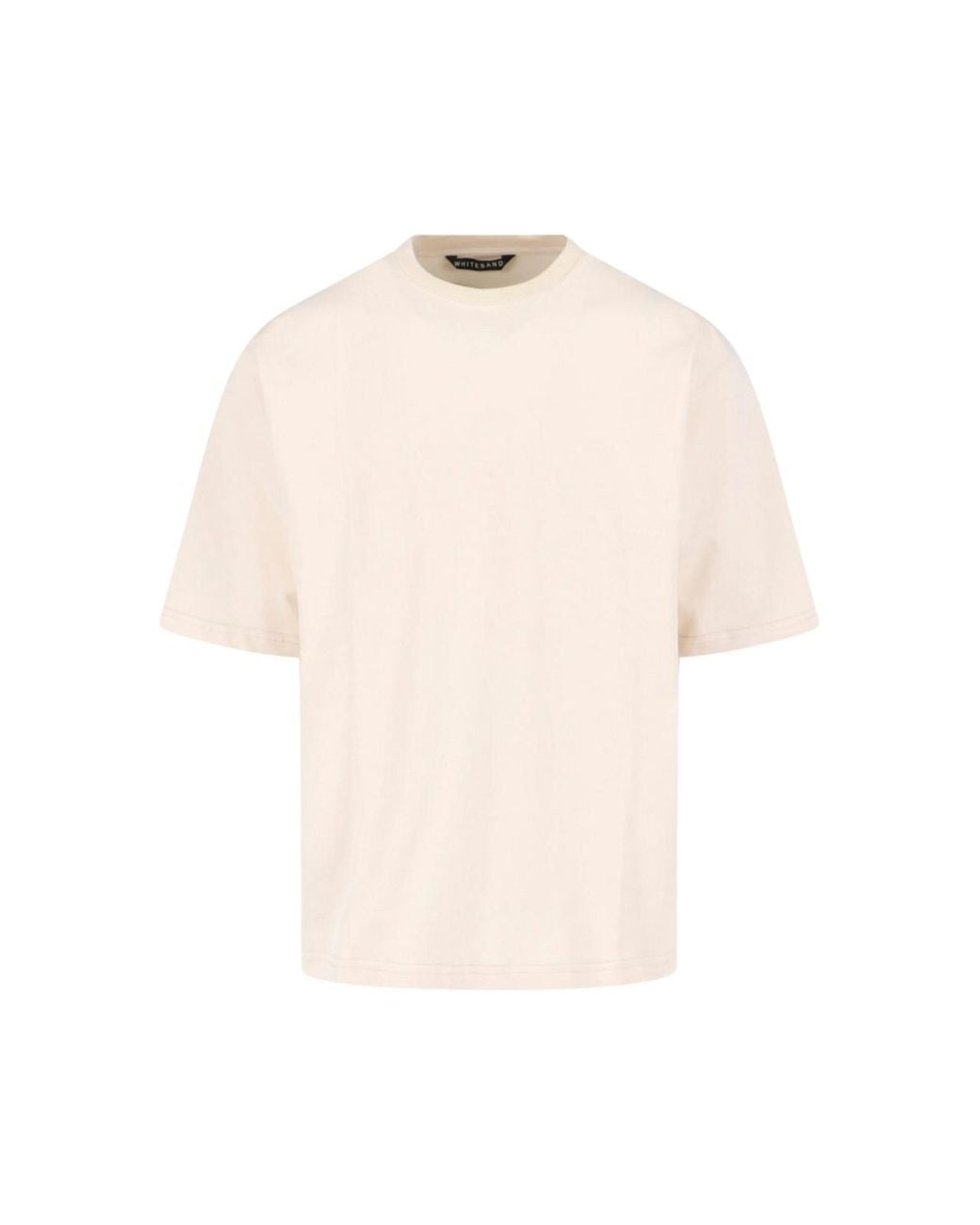 White Sand's crew neck cream cotton t-shirt with short sleeves, dropped shoulders, metal detail at the back, straight hem. Colour: white