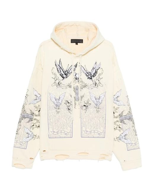 Yellow bird embroidered distressed detailing hooded long sleeves ribbed hem Size: L. Gender: Male. Material:Cotton. Colour: white