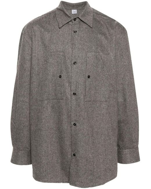 Men's Grey Herringbone-Pattern Mélange Shirt