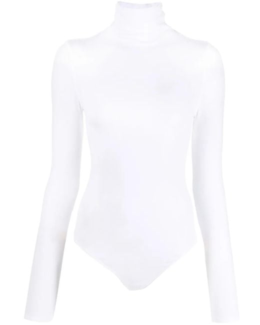Optical white stretch-cotton fine ribbed high neck long sleeves concealed press-stud fastening Just a reminder that this piece must be tried on over your own garments. Size: M. Gender: Female. Material:Spandex/Elastane/Polyamide/Cotton.