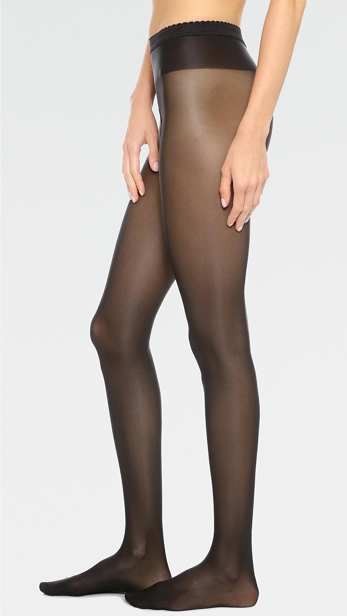 A high-gloss finish brings extra glamour to these Wolford tights. Semi-sheer. 85% polyamide/15% elastane. Wash cold. Made in Austria. Colour: black