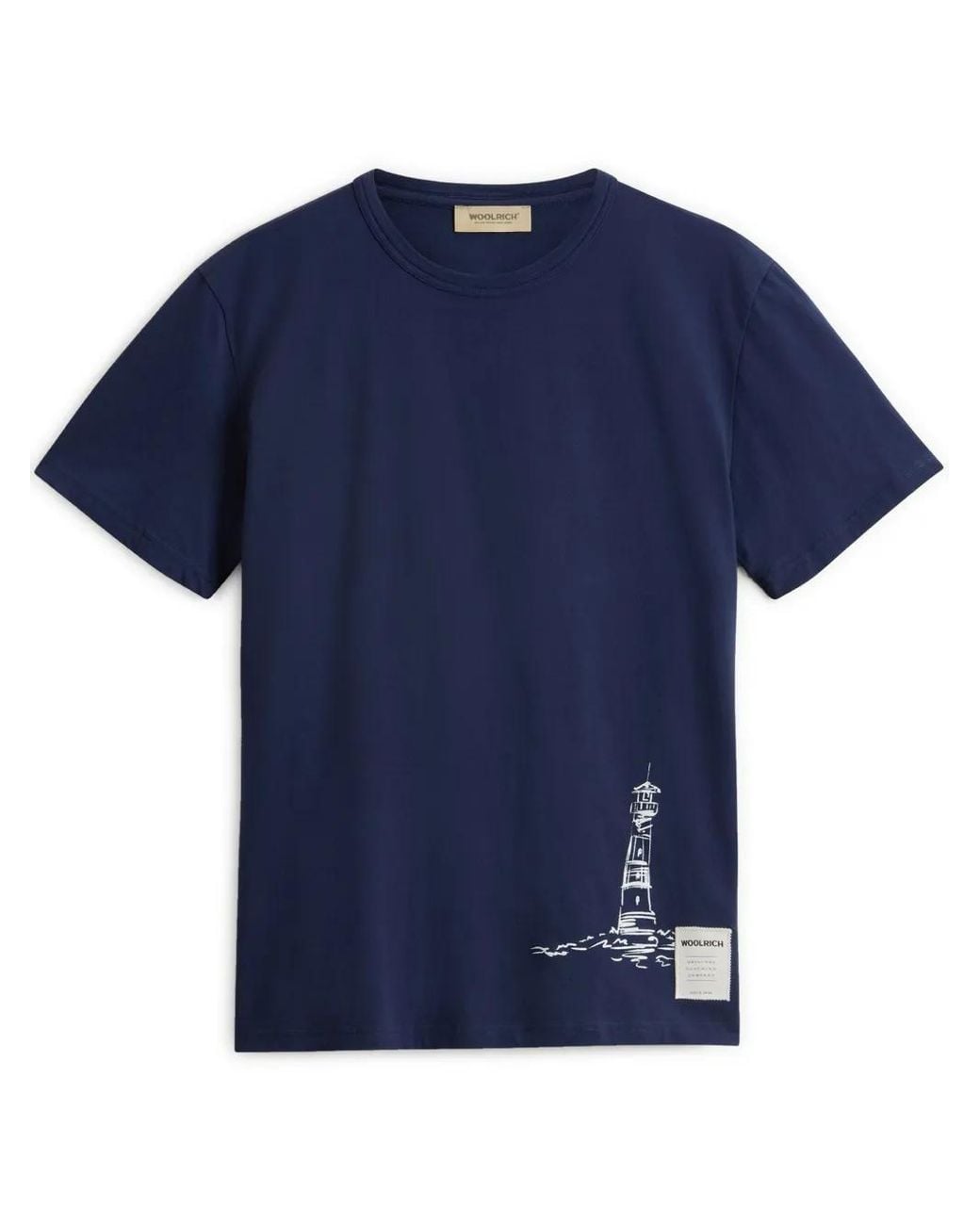 Navy blue graphic print to the front logo tag round neck short sleeves Size: S. Gender: Male. Material:Fabric. Colour: blue
