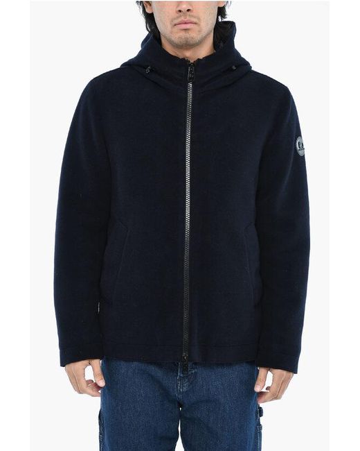 Men's Blue Wool And Nylon Pacific Down Jacket With Hood