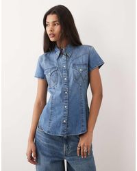 Tops by Wrangler Part of a co-ord set Shorts sold separately Spread collar Press-stud placket Long sleeves Chest pocket Logo patch Regular fit Colour: blue