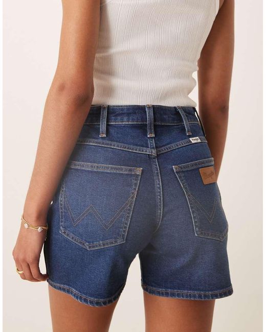Shorts by Wrangler High rise Belt loops Five pockets Branded patch to reverse Regular fit. Colour: blue