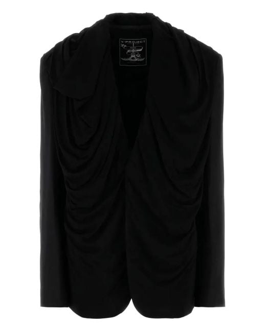 Women's Black Draped Hooded Viscose-Blend Blazer