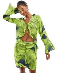 - Broderie Frill Detail Tie Neck Top Co-ord