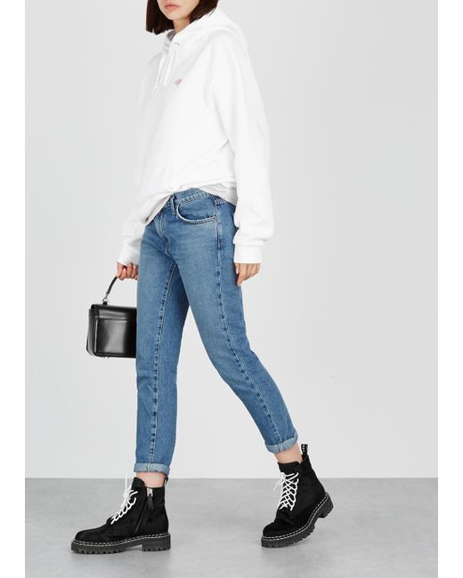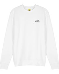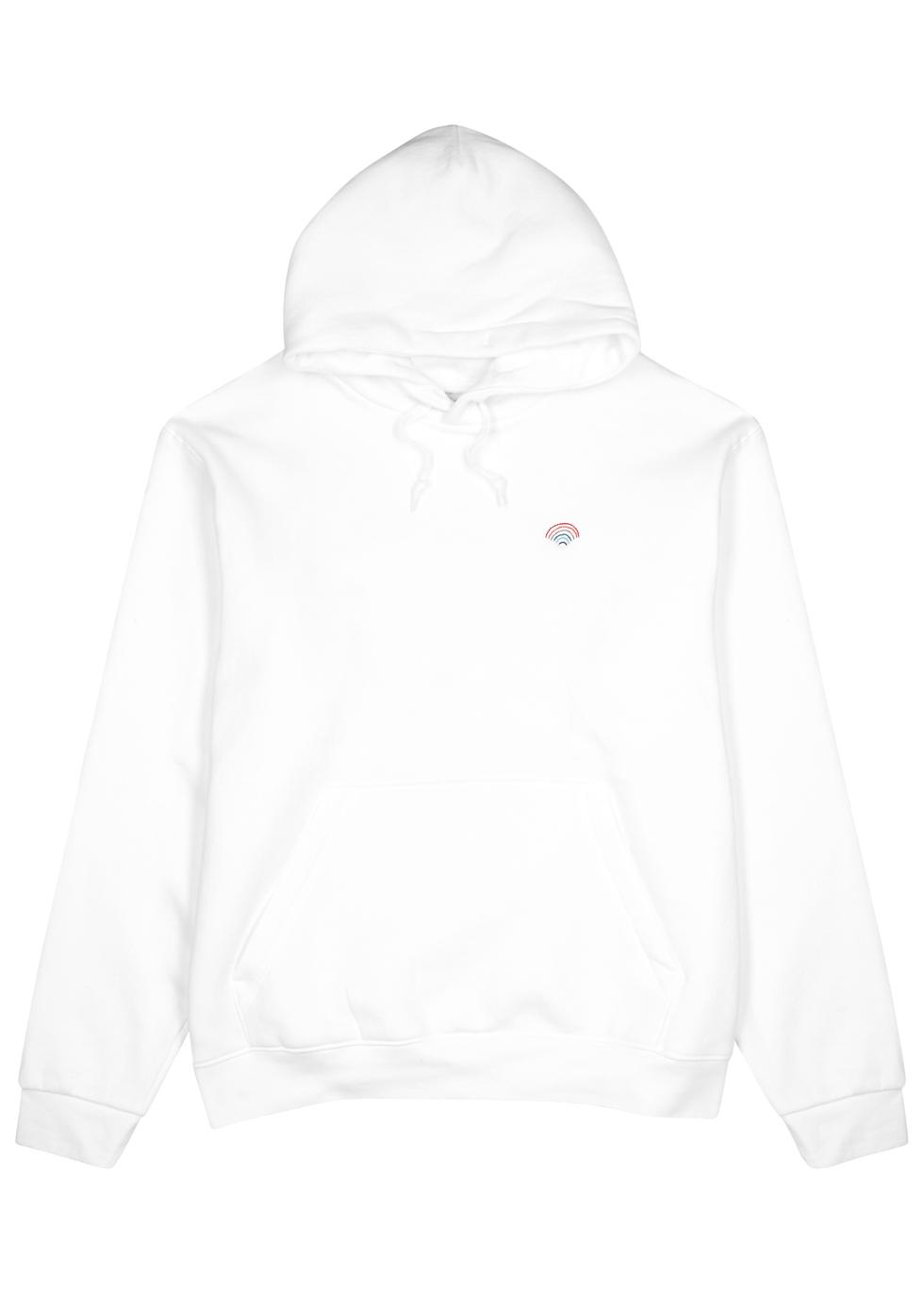 Hand-finished Yeah Right NYC white cotton-blend sweatshirt Drawstring hood, embroidered rainbow design at front, pouch pocket, ribbed trims Slips on 80% cotton, 20% polyester. Colour: white