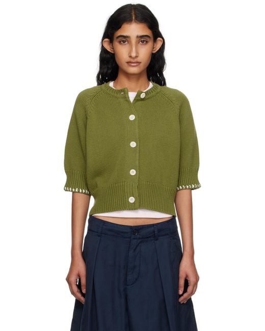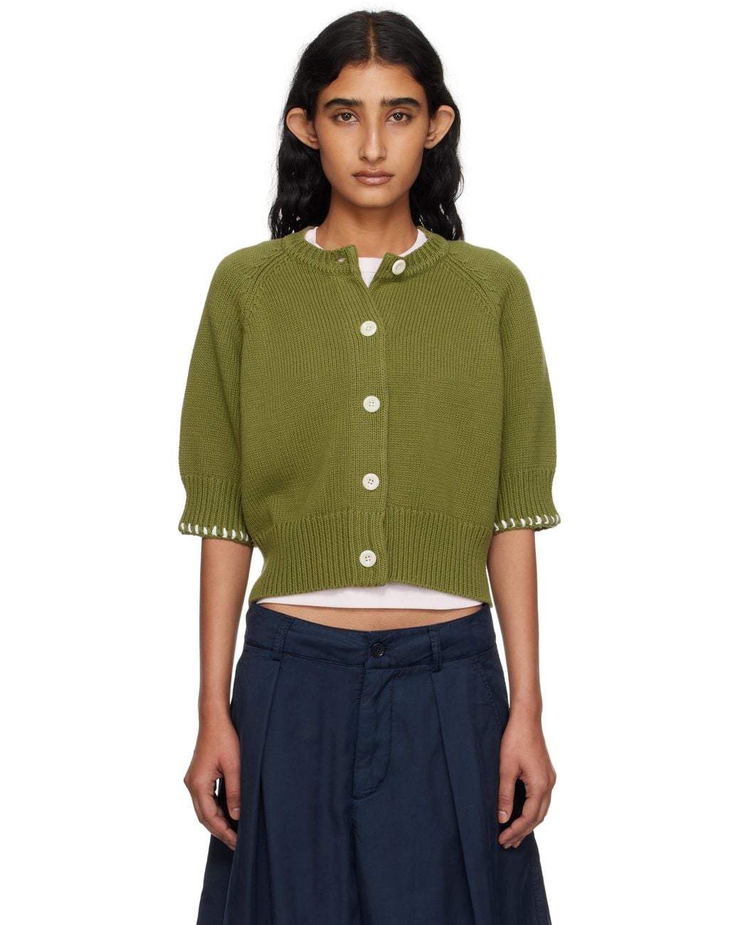 Knit cotton cardigan. · Rib-knit crewneck, hem, and cuffs · Button closure · Cropped hem · Raglan sleeves · Whipstitching in white at cuffs · Corozo hardware Supplier color: Green Colour: green