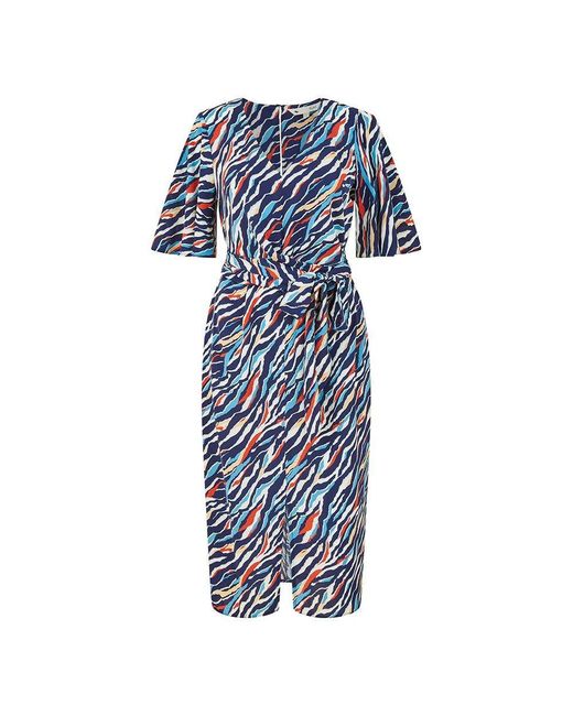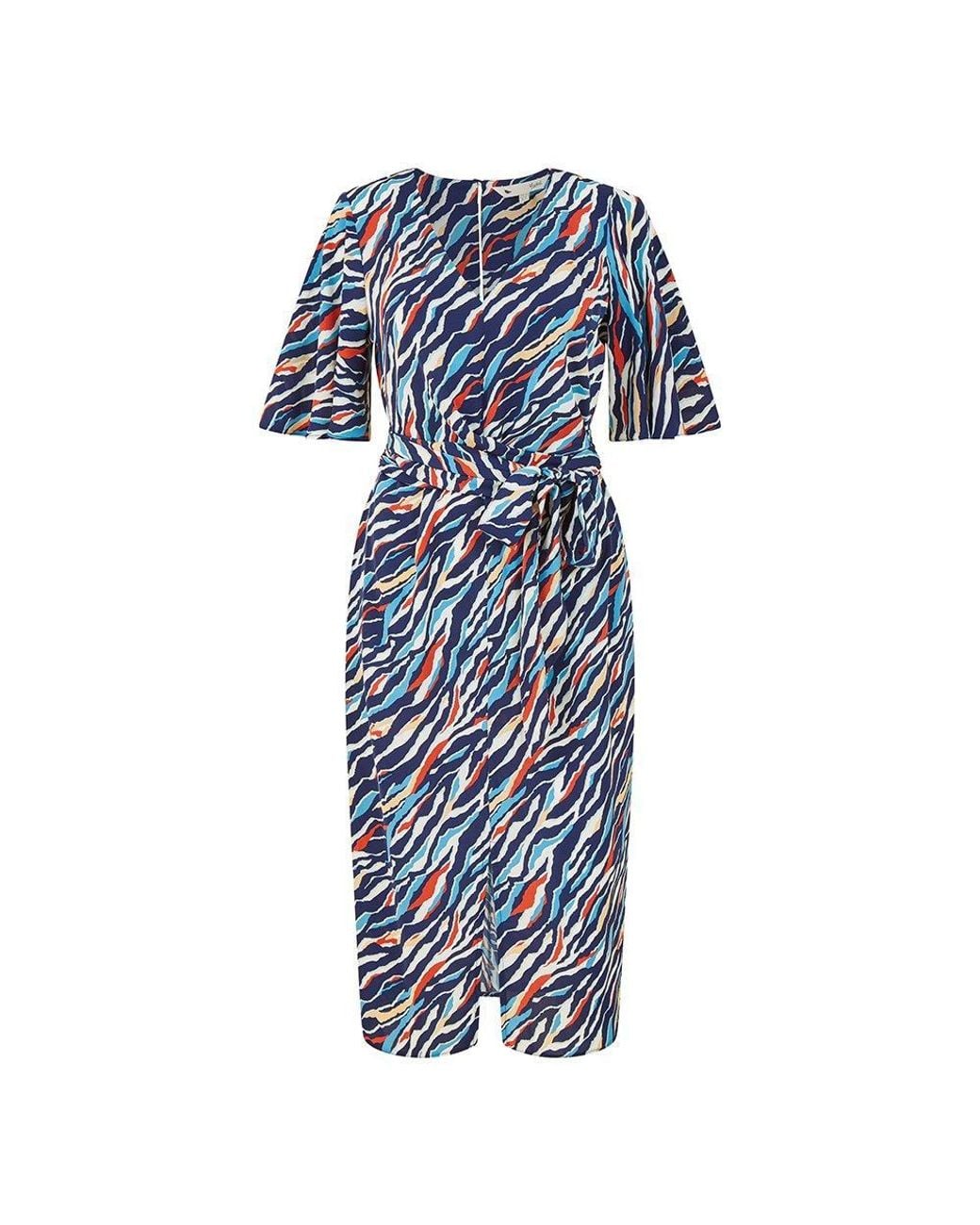 Women's Blue Zebra Stripe Midi Wrap Dress