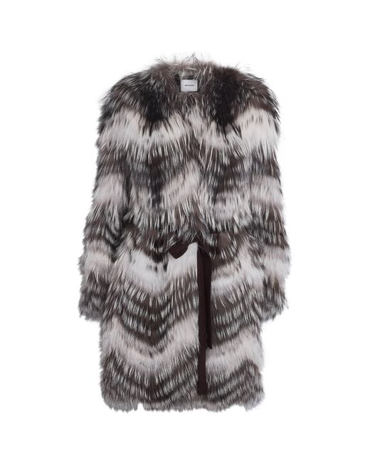 Soft yet structured, this sumptuous coat from Yves Salomon is a style that stands out for all the right reasons. Spotlighting geometric lines across its fox fur and wool profile, this cloud-effect piece is also able to be worn belted for a varied look. Colour: grey