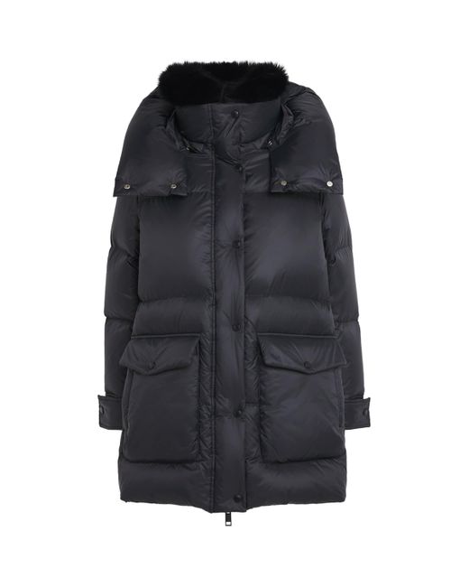 This down parka coat by Yves Salomon pairs technical insulation with sartorial finishing: a high neckline lined in fox fur offers immediate warmth while the detachable hood adds modular protection. Press-stud fastened splits at each side permit movement and ventilation while large front flap pockets secure essentials, making the coat equally suited to city commutes or alpine travel. Colour: black