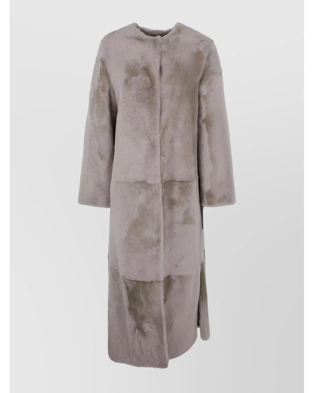Women's Grey Long Sleeve Faux Fur Patchwork Coat