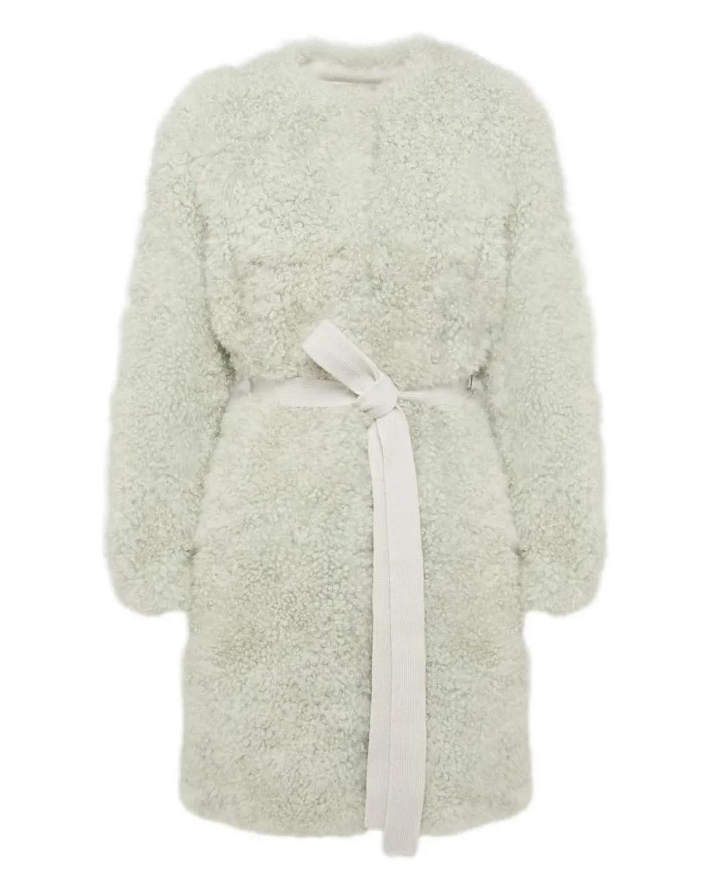 Belted Shearling Coat - Natural