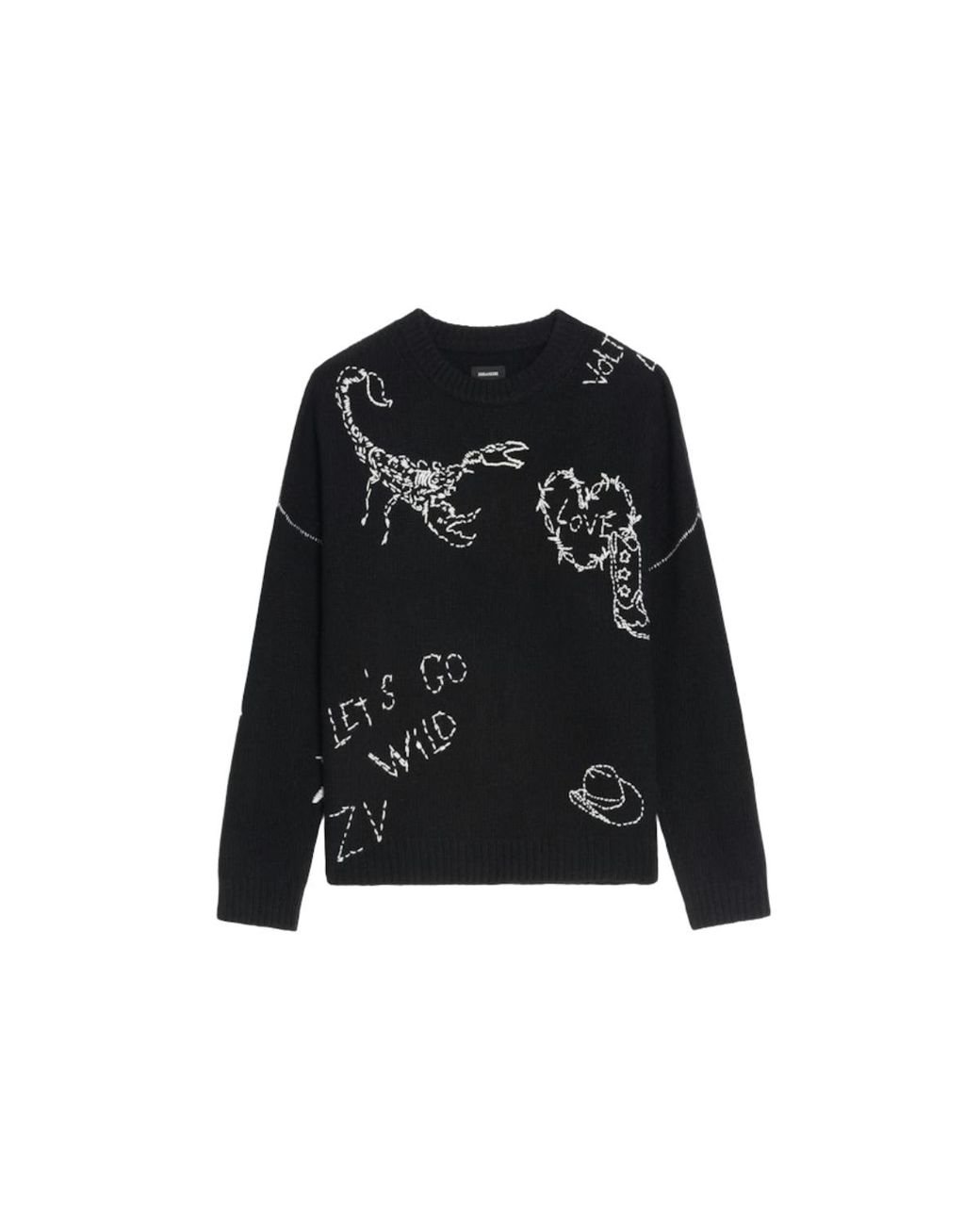 Jumper with round neckline and hand embroideries all over. Colour: black